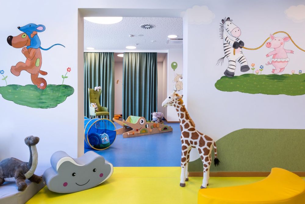 Mindestens 25 ausgebildete Kids Coaches kümmern sich ganztags von Montag bis Sonntag um Eure Liebsten – Babys können bei uns schon ab dem 7. Lebenstag Urlauben. Ihr relaxt inzwischen in der weitläufigen Wellness-, Bade- und Saunalandschaft unseres Familienhotels in Gosau. Platz und Zeit zu schaffen für gemeinsame Erlebnisse und Entspannung, das ist unsere Vorstellung von Luxus. Im 2.000 m² großen Indoor-Spielbereich warten Kino und Theater, Softplayanlage, Go-Kart-Bahn, Sporthalle und vieles mehr auf Euch. Selbst Regen verhindert nicht das Abenteuer in den Bergen – unser Virtual-Reality-Room lässt Euch jederzeit überall herumklettern.